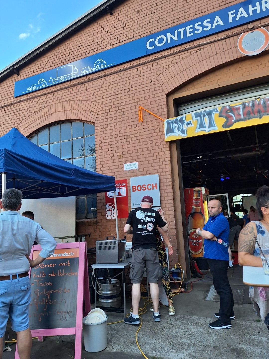 Der 19. Juli war bisher einer der schönsten Sommertage in diesem Jahr. Da passte es gut, dass wir für diesen Tag das OSC-Tischtennis-Sommerfest geplant hatten. Wie im letzten Jahr war in der Firma Contessa Fahrzeugtechnik von Detlef alles bestens vorbereitet. Der Gastgeber hatte seine Werkstatt blitzblank in Schuss gebracht und seine Musik- und Lichttechnik noch weiter perfektioniert. Die Tanzfläche vom Vorjahr wurde zusammengezimmert, die Hebebühne zur idealen Grundlage des Buffets umfunktioniert, „Lieferdienste“ und natürlich die von den Gästen mitgebrachten Köstlichkeiten sorgten für Speis und Trank und viele nette Gäste waren eingeladen.