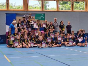 Zum Abschluss gab es noch einen hochklassigen Showkampf mit Fanbo Meng, Yuan Wan und Lotta Rothfuß – ein echtes Highlight! Danach durften alle Kinder im Rundlauf gegen die Stars selbst nochmal zum Schläger greifen, bevor es dann zur großen Siegerehrung ging. Alle Kinder durften sich über eine schöne Teilnahme-Medaille freuen. Beim abschließenden Mittagessen in der Gemeindehalle wurde nochmal ausgiebig geplaudert, bevor sich alle auf die Heimreise machten.
